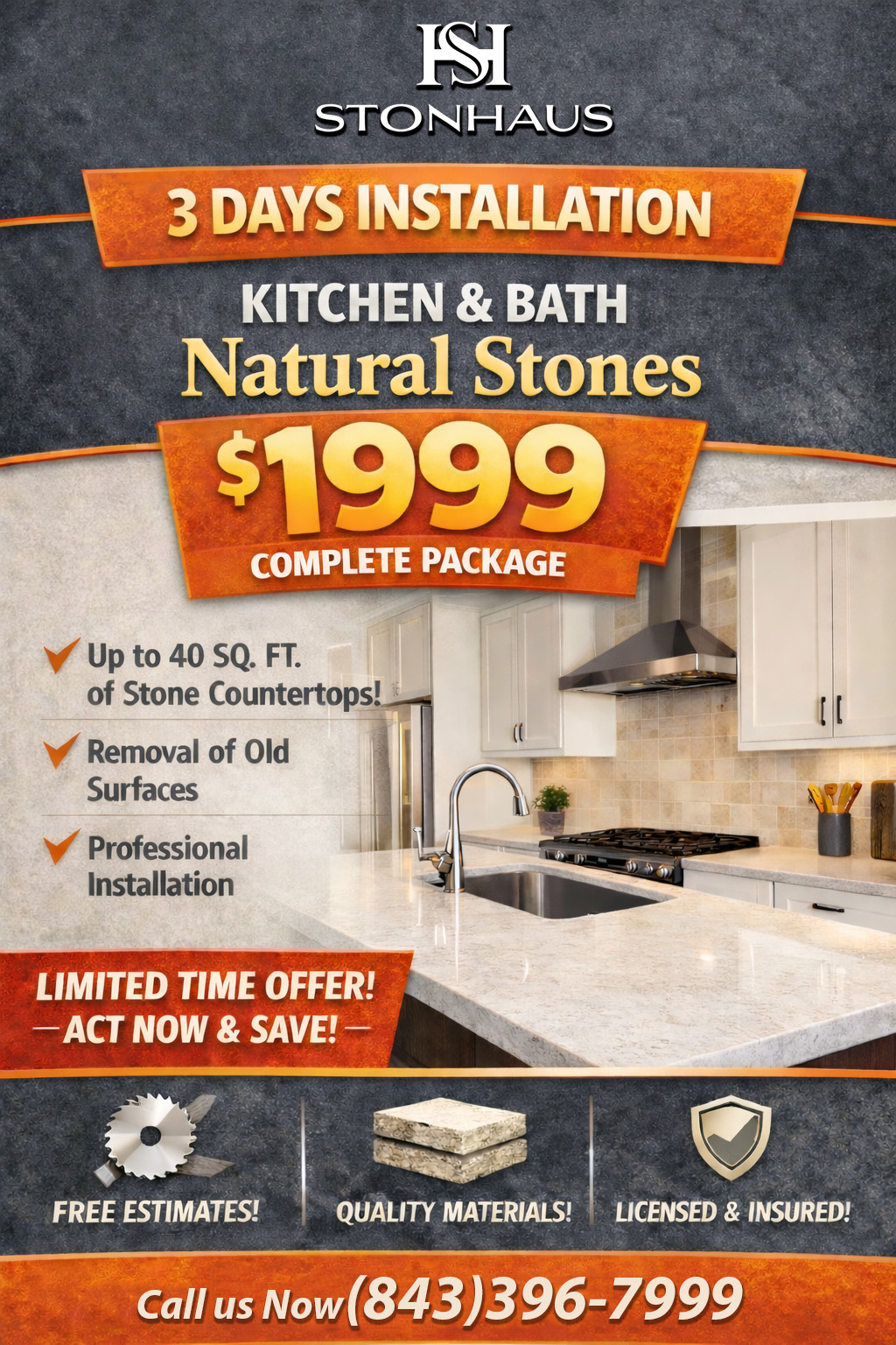 Exceptional Countertops in Charleston — Installed in Just 3 Days At Countertops Charleston (operating as Stonhaus), we craft stunning custom stone surfaces for kitchens and bathrooms throughout Charleston County with speed, quality, and a personal touch. Choose from over 500 premium stone options — including granite, quartz, marble, and more — all carefully fabricated to your specifications. From your first consultation to the final install, our experienced team brings refined craftsmanship and clear communication to every project, making your remodel seamless and satisfying