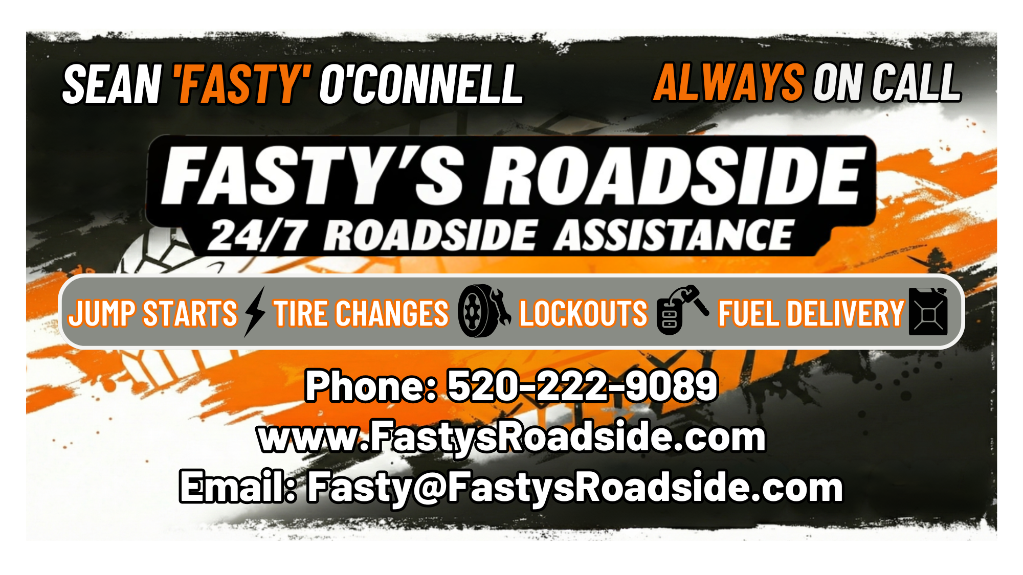 No Drama. No BS. Just Fast Help. Fasty's Roadside is Tucson’s locally owned, straight-shooting solution for roadside emergencies. We eliminate corporate runarounds and long wait times, providing 24/7 service across the Tucson metro. Our expertise includes jump starts with heavy-duty gear, flat tire changes, vehicle lockouts, and fuel delivery. We get you rolling fast so a breakdown doesn't ruin your day. Call Fasty’s—we handle the drama so you don’t have to. Photo gallery