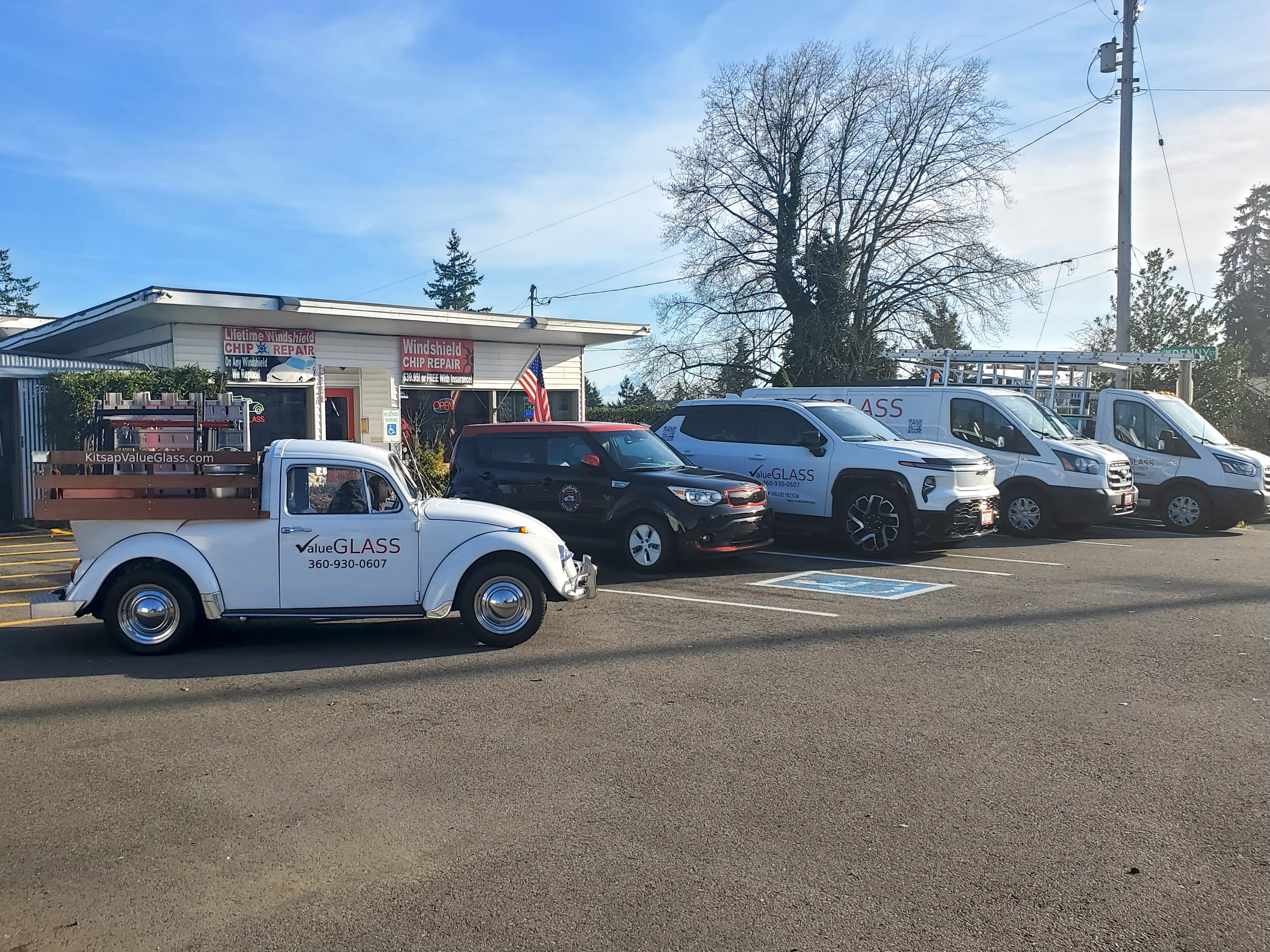YOUR LOCAL, INDEPENDENT, VETERAN OWNED, BEST VALUE, GLASS COMPANY. (Not A Chain Or Franchise, Keep More Of Your Money! Keep Your Business Local!) We Repair and Replace Your Auto Glass Plus, Residential, and Commercial Glass. Nobody knows your car or home like you do. That is a fact! You spend countless hours day after day, looking through your windows and examining every facet of your vehicle or property. We make the commitment to you to listen to your concerns and issues and do our best to repair to your satisfaction. The customer is always right! From Poulsbo, Silverdale, Bremerton, Gorst, to Port Orchard, and all points in between. we serve the entire county of Kitsap, conveniently located in the heart of the county in East Bremerton!