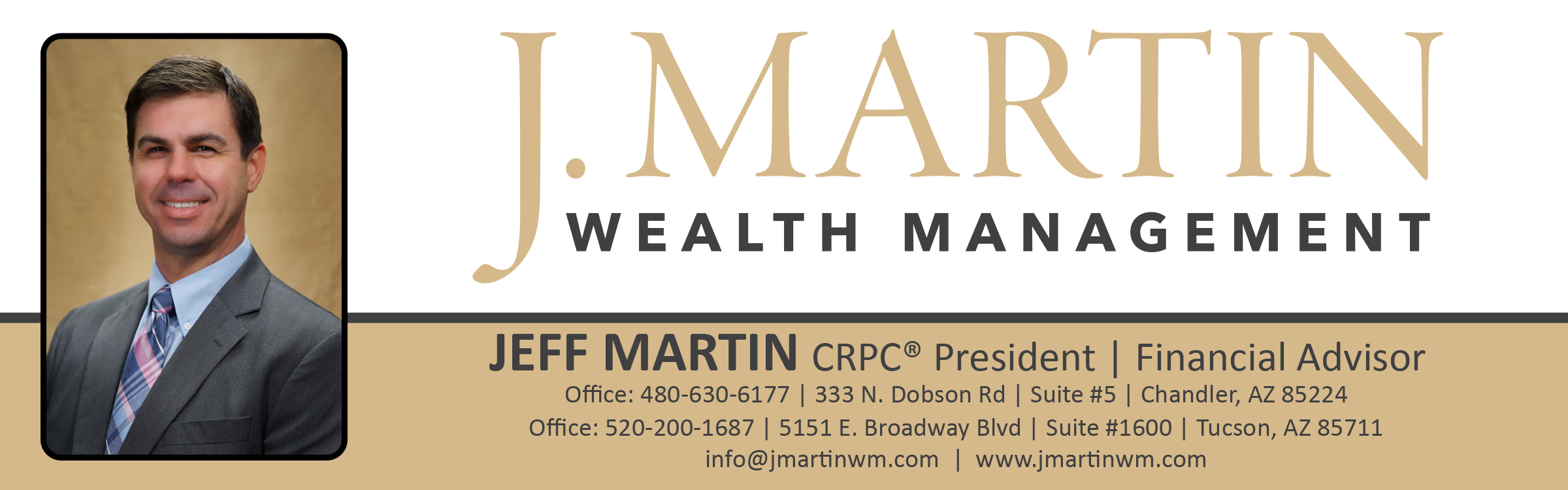 Jeff Martin, founder of J. Martin Wealth Management, is a highly qualified fiduciary financial advisor, offering fee-based wealth management. Services include financial planning, retirement planning, tax planning, and wealth management services. With over 17 years of financial services experience and a bachelor's degree in Accounting, Jeff brings extensive knowledge and proficiency in personal finance and retirement planning. He holds the Chartered Retirement Planning Counselor designation and is dedicated to educating clients and providing personalized services to help them succeed now financially and in retirement. Jeff has offices in Chandler, Gilbert, Maricopa, and Tucson, Arizona.
