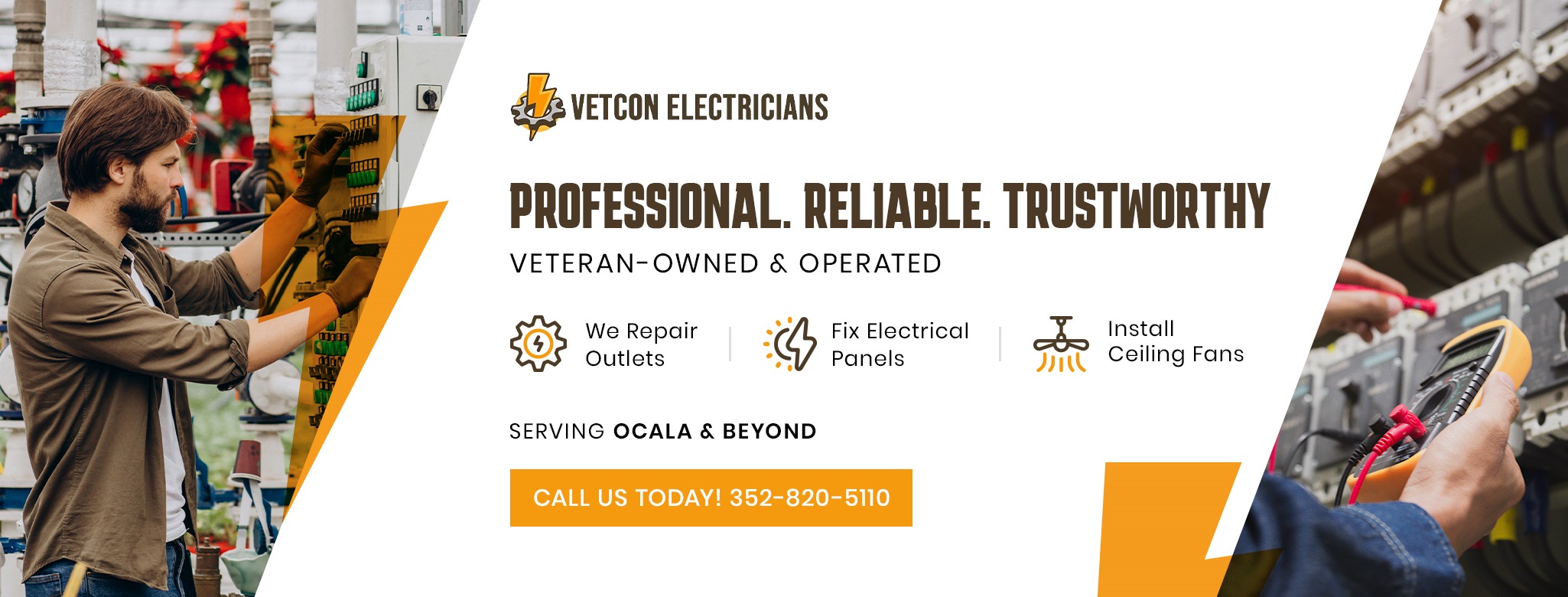 Vetcon Electricians of Ocala is a proud Veteran-Owned business dedicated to delivering exceptional electrical services in Ocala, FL. With a strong commitment to quality and integrity, we cater to both residential and commercial clients, providing a full range of electrical solutions tailored to meet your needs. From repairs and installations to upgrades and maintenance, our team of experienced electricians is equipped to handle projects of any size and complexity.