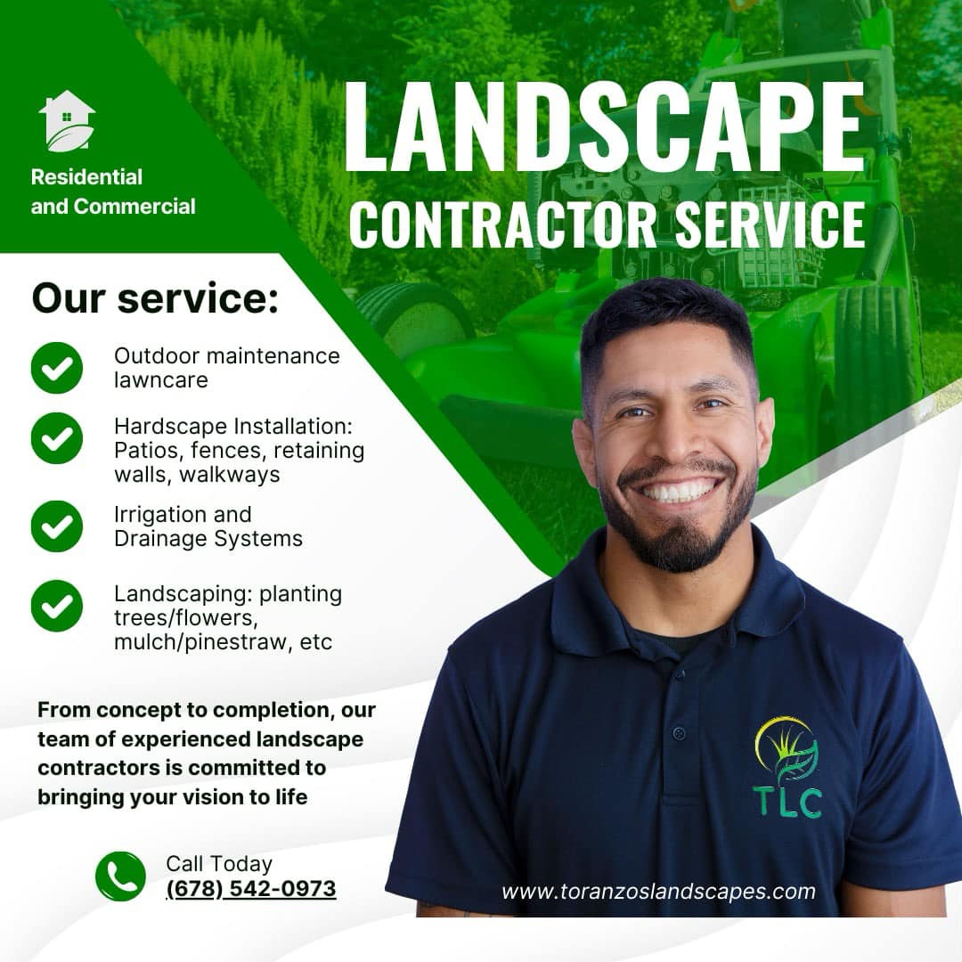 Toranzo’s Landscape Company LLC – Lawn Care & Landscaping Services At Toranzo’s Landscape Company, we provide high-quality lawn care and landscaping services designed to keep your property looking its best year-round. Serving Lawrenceville and the surrounding Gwinnett County area, we specialize in both residential and commercial properties with reliable service, attention to detail, and professional results. Our Services Include: Lawn Care & Maintenance – Regular mowing, edging, trimming, and cleanups to keep your lawn neat and healthy. Sod Installation – Bermuda, Zoysia, and Fescue sod installation with full grading and soil preparation. Landscape Design & Installation – Custom designs with shrubs, trees, mulch, decorative rock, and seasonal flowers. Hardscaping – Retaining walls, paver walkways, wooden steps, and other durable outdoor features. Drainage Solutions – French drains, catch basins, downspout extensions, and erosion control systems. Tree & Shrub Services – Planting, trimming, removal, and property cleanups. Mulch & Pine Straw – Delivery and installation to enhance curb appeal and protect landscaping. Seasonal Enhancements – Colorful flower beds, annual plantings, and landscape refreshes. Why Choose Us? Locally owned and operated in Lawrenceville, GA. Professional crews with years of experience. Attention to detail on every project, big or small. Customized solutions to fit your property’s needs and budget. Whether you need routine lawn maintenance or a complete landscape makeover, Toranzo’s Landscape Company LLC is here to bring your outdoor vision to life. 📞 Contact us today for a free estimate and discover why homeowners and HOAs across Gwinnett trust us for dependable, high-quality landscaping.