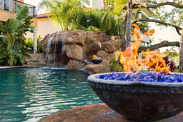 Pools Spas Fire features artificial Turf