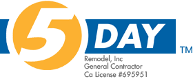 5 Day Remodel is a General Contractor Licensed, Bonded and Insured in the State of California. We specialize in of Gourmet Kitchens, Bath Retreats, Room Additions and Whole House Remodel projects. We provide professional design, sales, and installation of all dealer authorized products. We pride ourselves in construction management and supervision of all our Home Remodel projects. Serving California Residents since 1974.