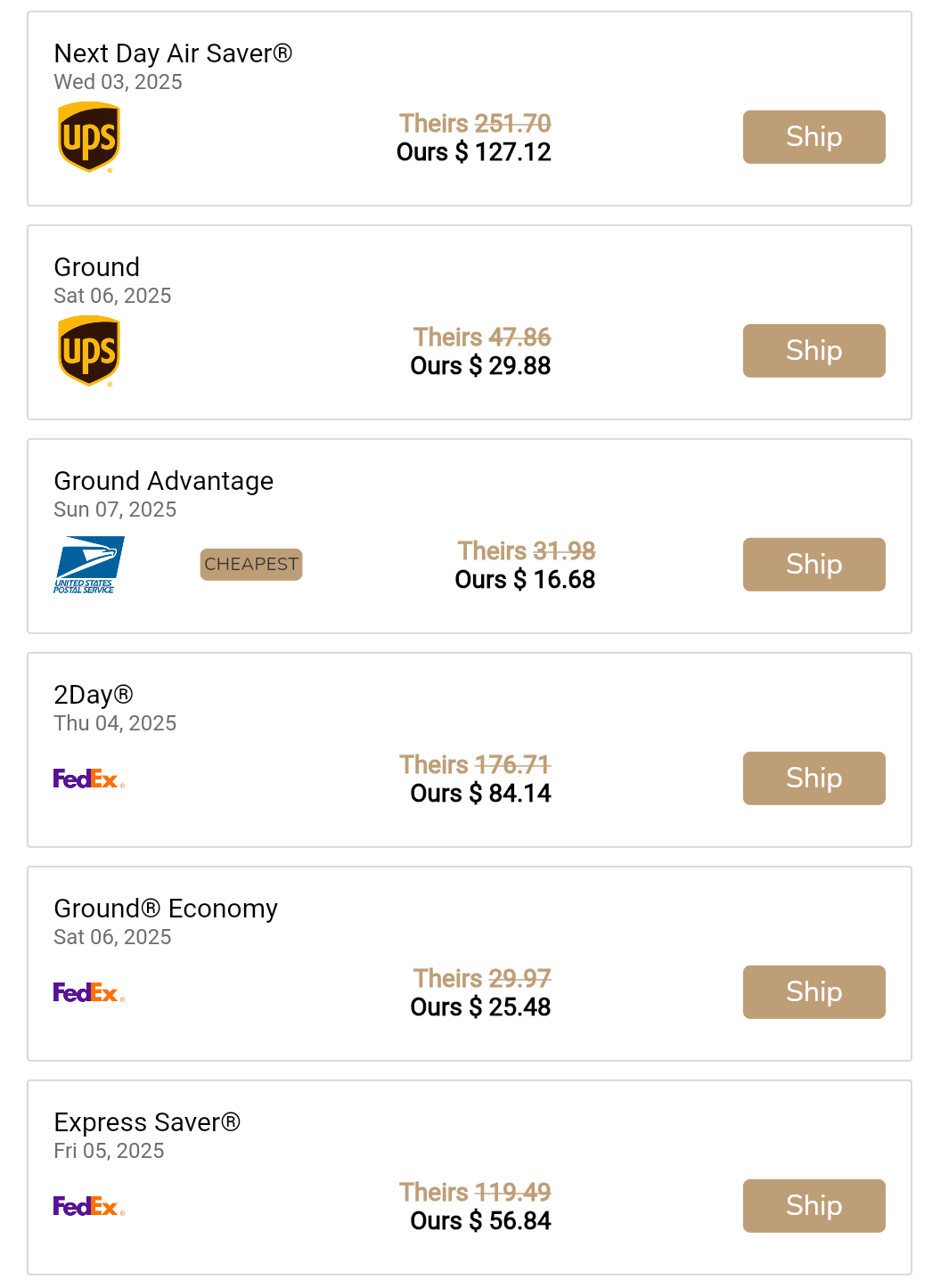 Shiponadime provides access to wholesale shipping rates that are typically reserved for large corporations. By using our platform, you can instantly compare and access discounted rates for major carriers including UPS, FedEx, and USPS. This allows individuals and small businesses to significantly reduce their shipping costs without needing to negotiate their own contracts with carriers.