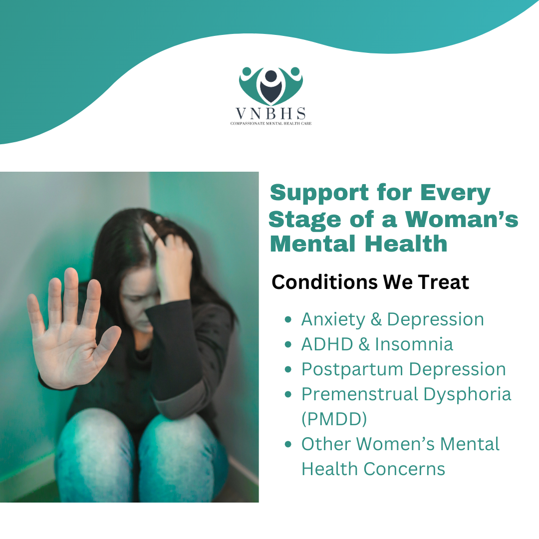 Anxiety Treatment , Depression Treatment , Insomnia Treatment , ADHD Treatment , Post partum depression Treatment , Premenstrual dysphoria Treatment , Bipolar treatment , Talk therapy , Women issues