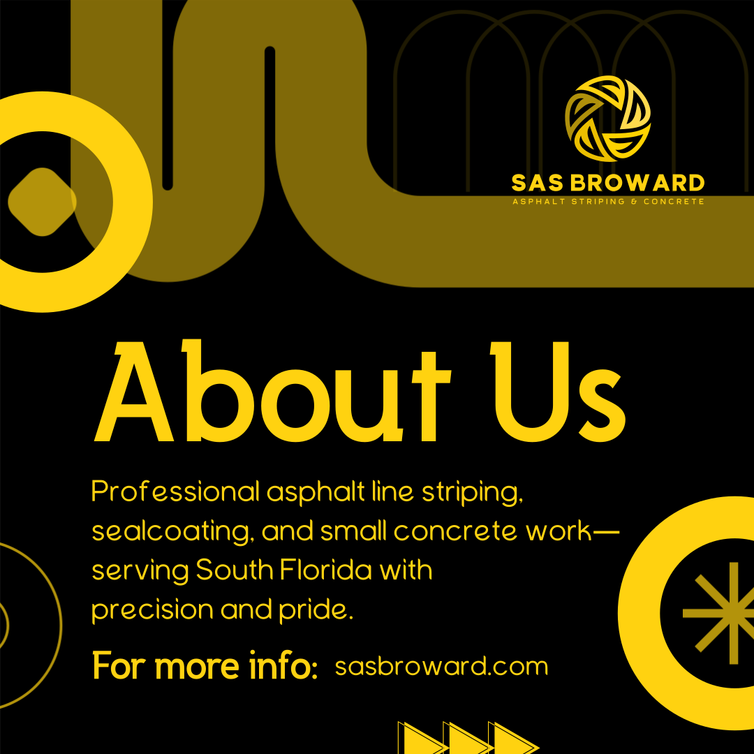 SaS Broward Asphalt & Concrete is a family-owned provider of professional asphalt line striping, sealcoating, and small concrete services throughout South Florida. We specialize in crisp ADA-compliant layouts, durable sealcoats, and minimally disruptive crews who respect your property and timelines. With a 98% on-time start rate and over 15 years of experience, SaS delivers sharp lines, lasting protection, and safe surfaces with pride. Emergency services available on Sundays.