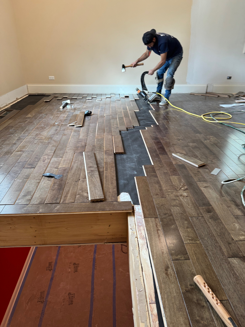 top-notch wood flooring services in Palatine and surrounding areas. Our team of experts has over 11 years of experience in hardwood floor installation, wood floor repair, laminate flooring services, floor refinishing, and wood floor sanding. We are dedicated to transforming your space with the timeless beauty of wood floors. Whether you're looking to enhance your home or office, our skilled craftsmen will ensure that your flooring project exceeds your expectations. Contact us today for a free consultation and let us bring the warmth and elegance of wood floors into your space. #WoodFlooring #FlooringServices #Palatine #HardwoodFloorInstallation #FloorRefinishing #WoodFloorRepair